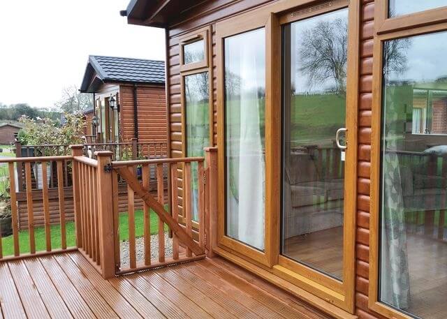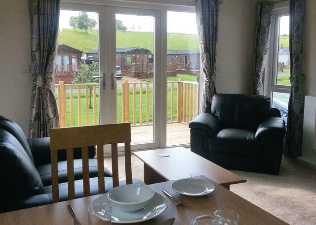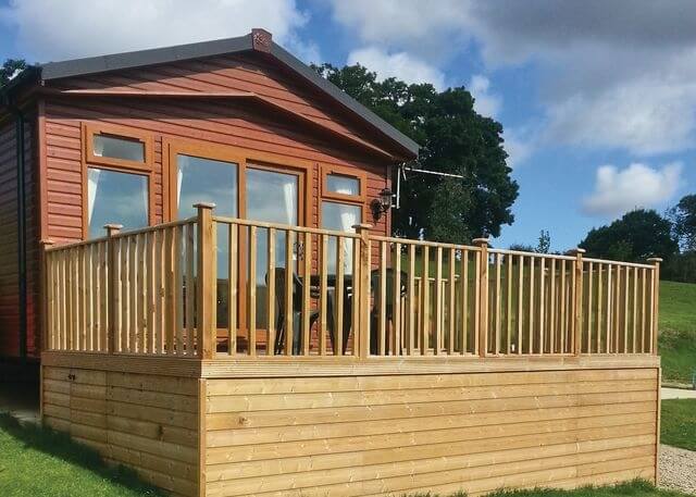 This lodge is slightly larger than the other two and has a very modern feel to its interior. The open living space is cleverly laid out into three separate areas: fully-fitted kitchen, dining suite and lounge. The double bedroom has an en-suite shower room and there is a second twin room. Outside, the decked leisure space enjoys views over the surrounding park and beyond to the Yorkshire scenery.