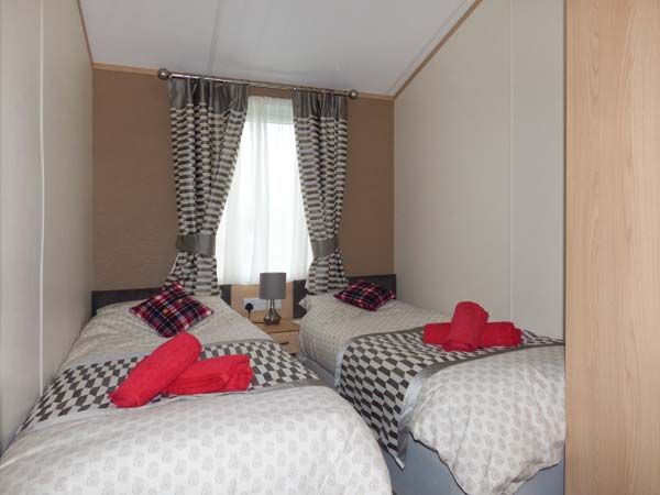 The lodge has three bedrooms. One double with a dressing room and en-suite shower, basin and WC. Plus two twins. The main bathroom has a bath with a shower over, basin and WC.