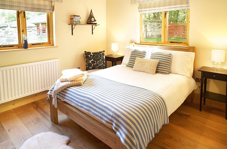 The lodge consists of three bedrooms, one en-suite walk-in shower, and one family bathroom.
