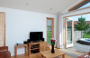 The kitchen is fully equipped. It features an electric oven, microwave, gas hob, fridge freezer, dishwasher and washer dryer. There is also the full array of utensils and accessories. The kitchen, dining and living open space provides access to the outside terrace.